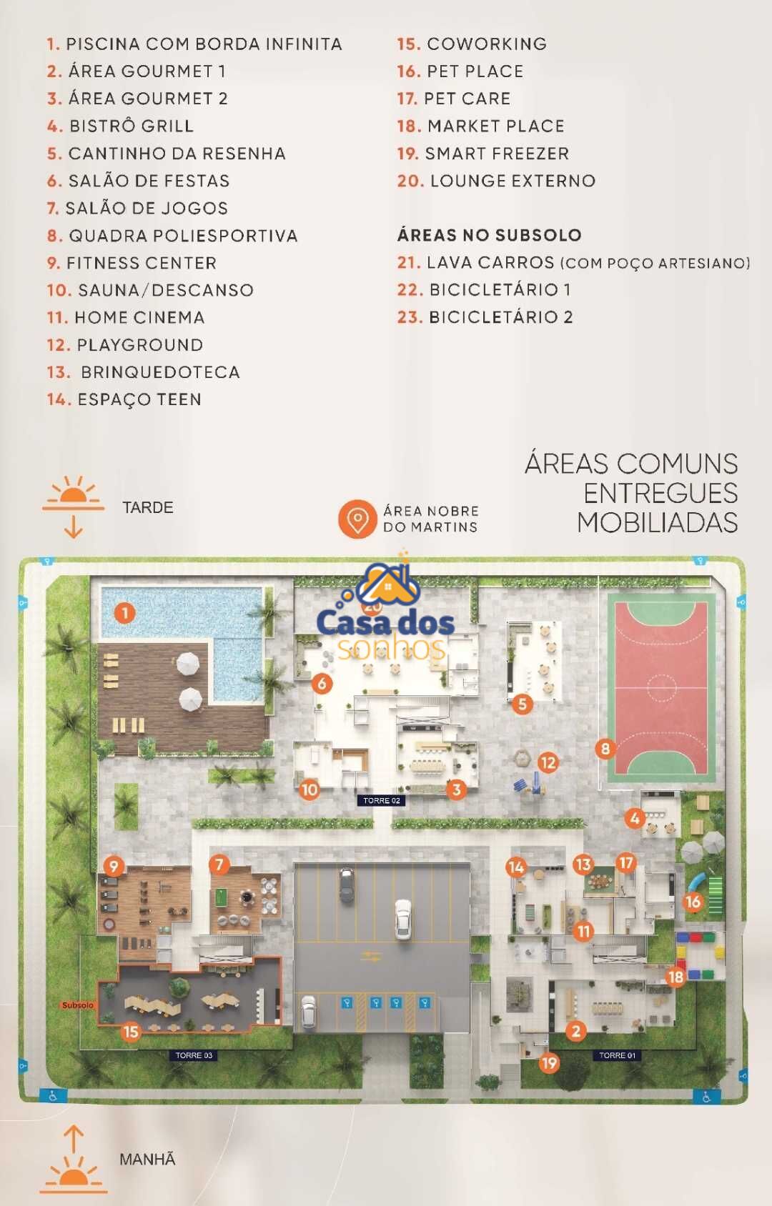 Piscina com borda infinita,sauna, 2 área gourmet, bistrô gril, cantinho da resenha, salão de festas, salão de jogos, quadra poliesportivo, academia,Home cinema, playground, brinquedoteca, espaço teen, coworking, pet place, pet Care, market place, smart freezer, lounge externo, bicicleta e lava carros(com poço artesiano)