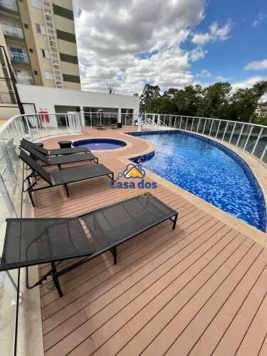 Condomínio conta com elevador, portaria, piscina, área gourmet, salão de festas, playground