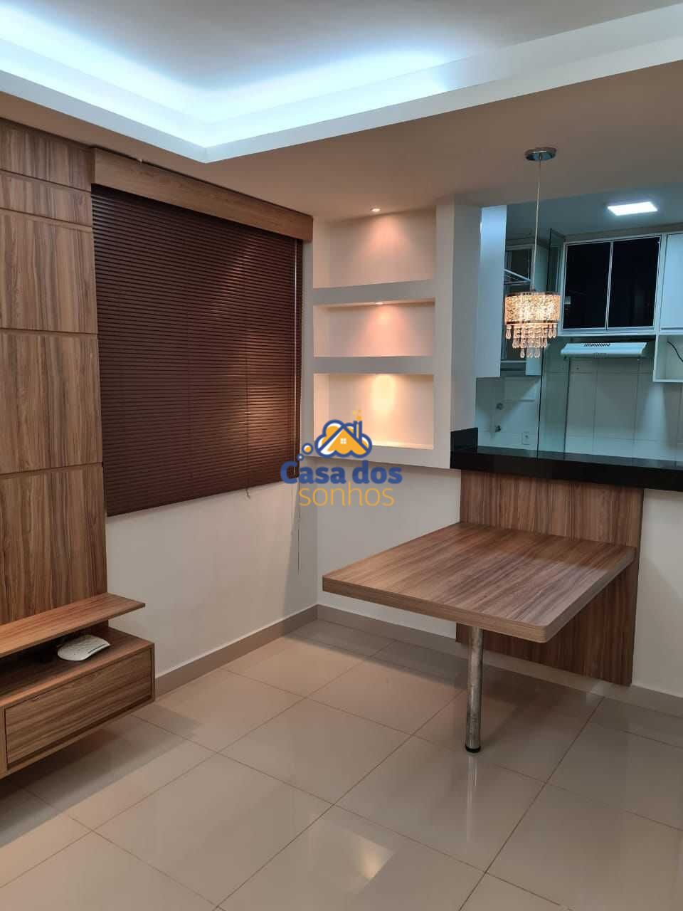 02 Quartos, com guarda roupas planejados, camas com cabeceira, ventilador e painel de tv