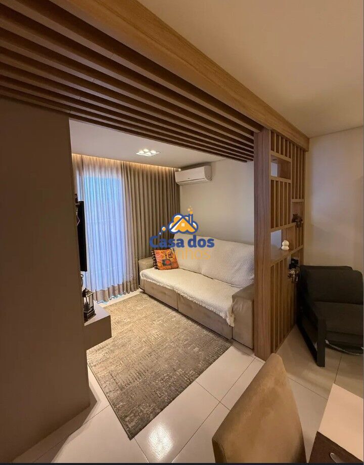 03 Quartos, sendo uma suíte com guarda roupas planejados, cama Queen e ar condicionado e tv de 32 polegadas , 1 quarto com cama box e auxiliar, 3 quarto montado escritório com ar condicionado