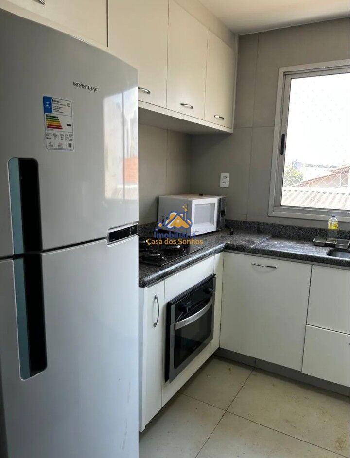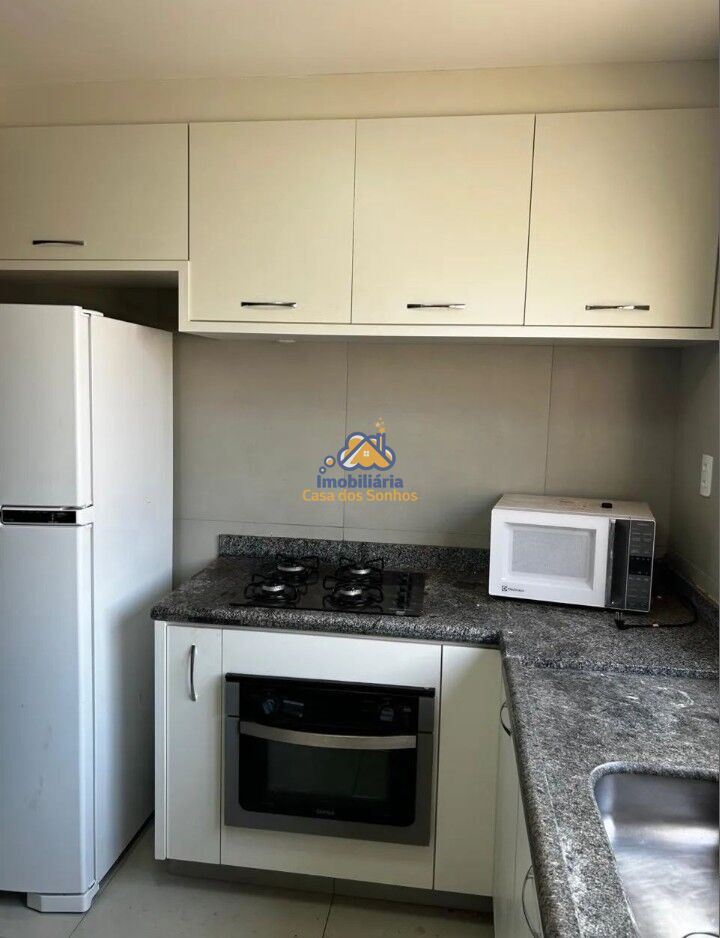 Cozinha com pia e bancada em granito, armários planejados, geladeira, Cooktop, microondas, filtro de água