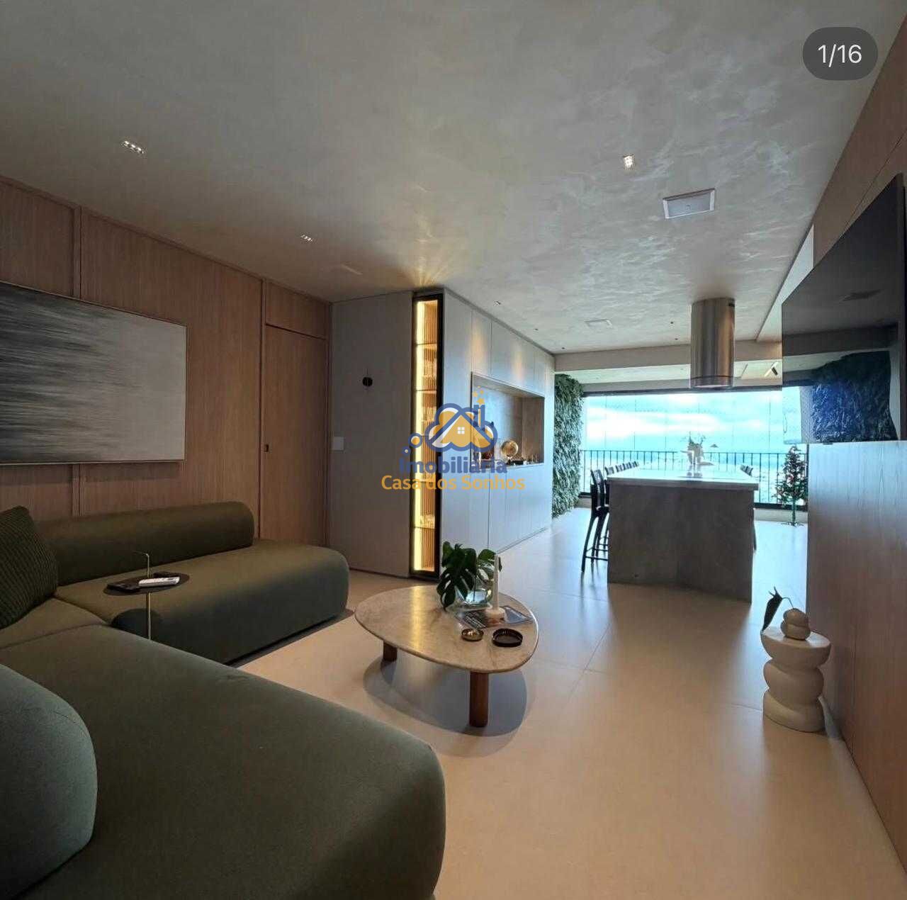 Sala ampla em dois ambientes, integrando cozinha e varanda gourmet