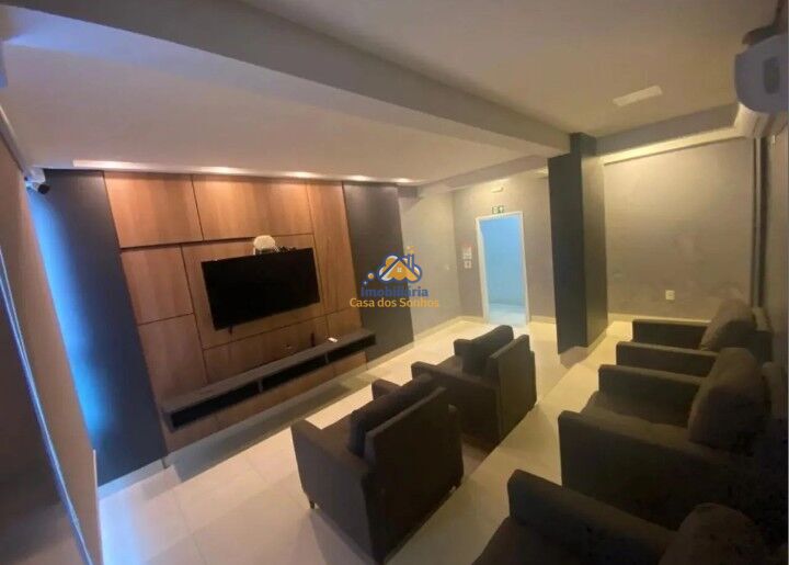 Condomínio conta com elevador, portaria, piscina, salão de festas, sala de cinema, academia, sala de jogos