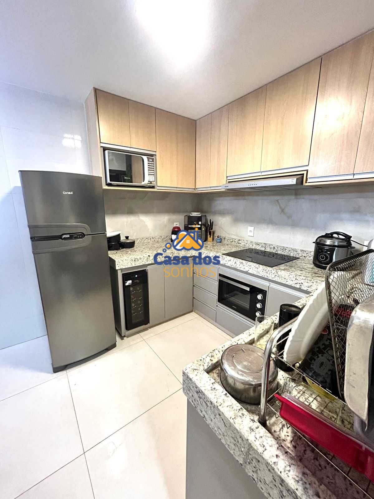 -03 banheiros (sendo um suíte) com armário, box e acessórios, Sala ampla com painel, cortina, projeto de iluminação, som embutido e sacada01 cozinha com cooktop (gás) - forno embutido, sugar e lava louças, armários planejados e bancadas em granito