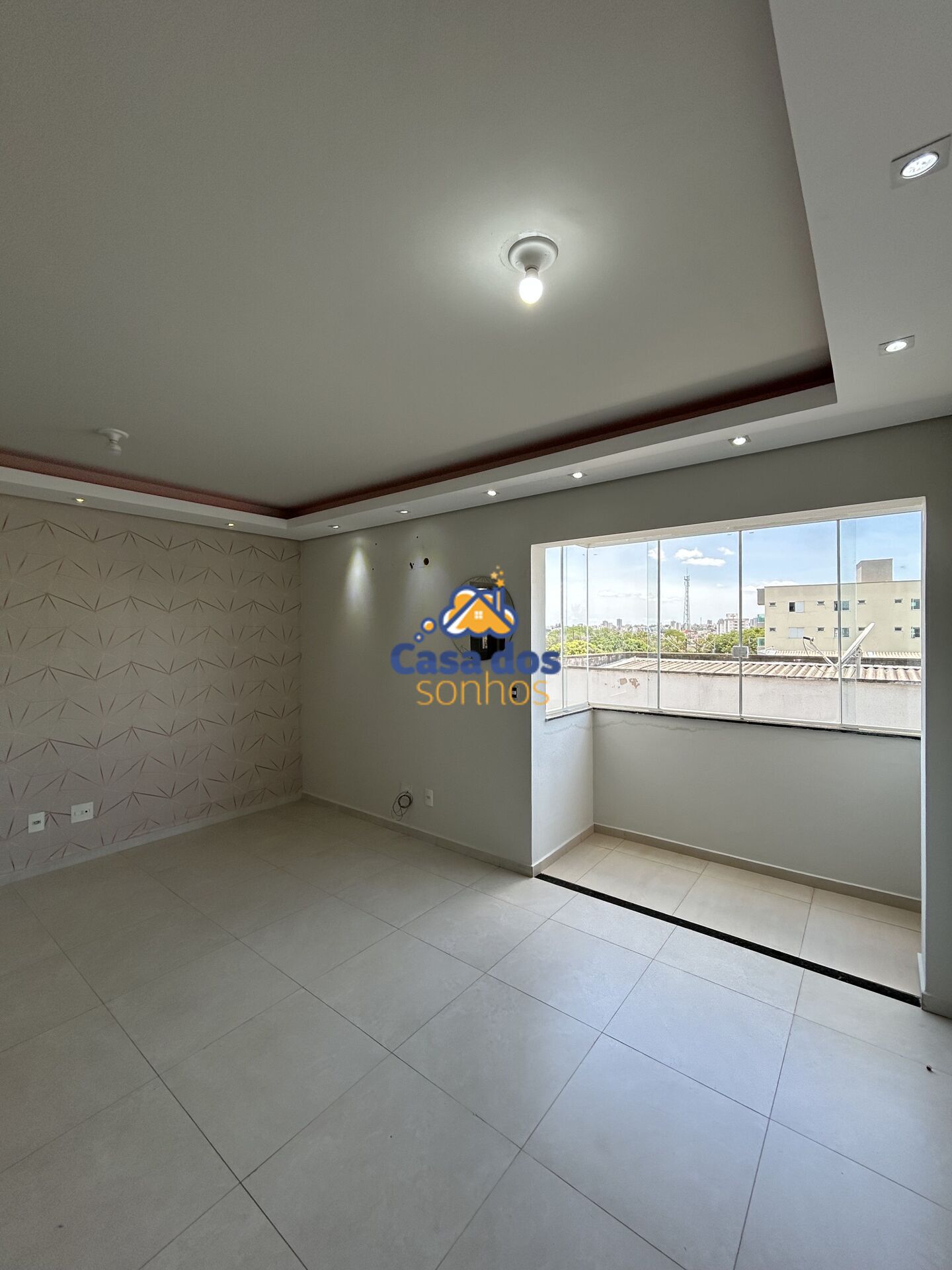 Sala ampla em dois ambientes com sacada