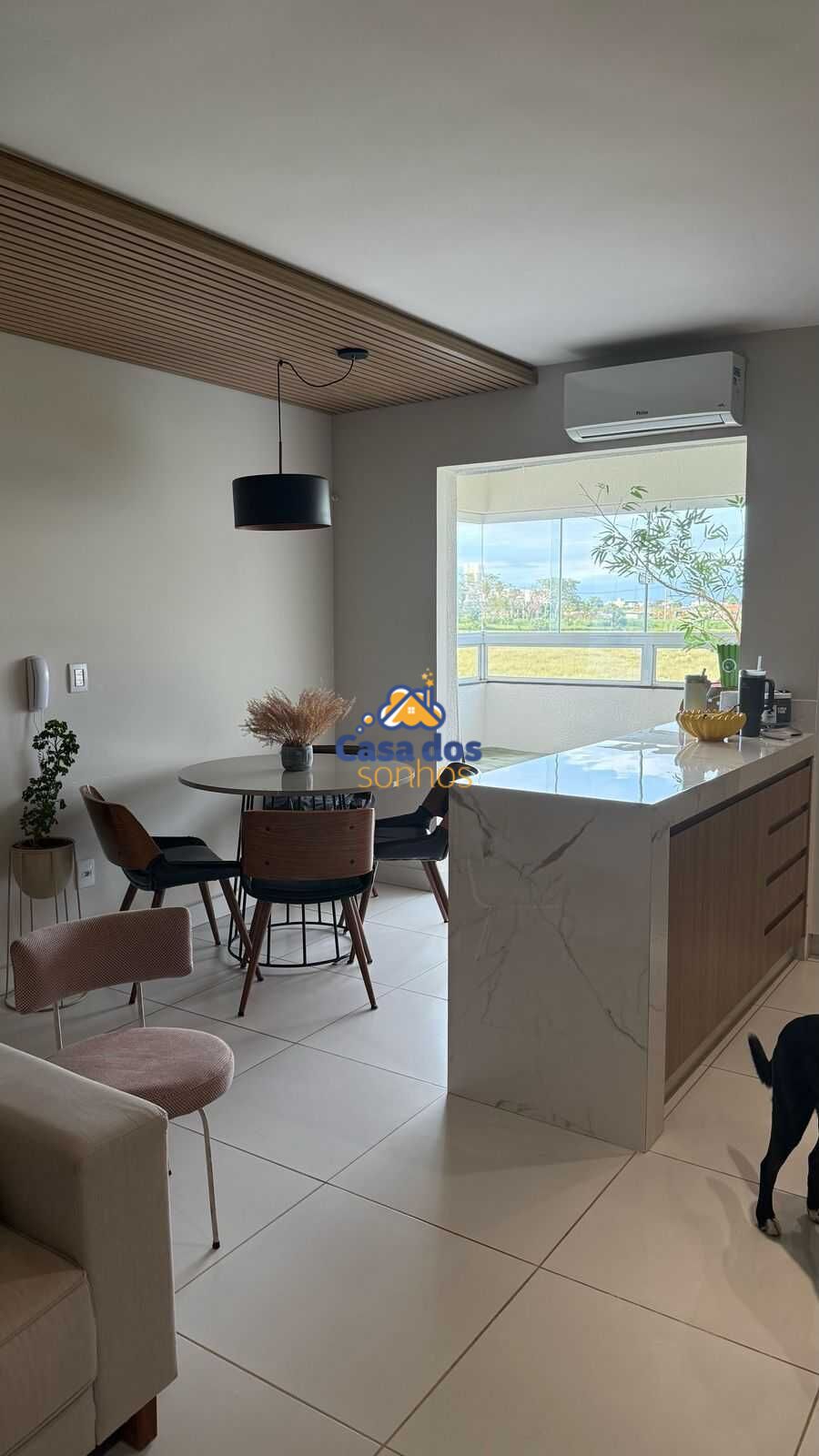 Sala ampla em dois ambientes, sacada