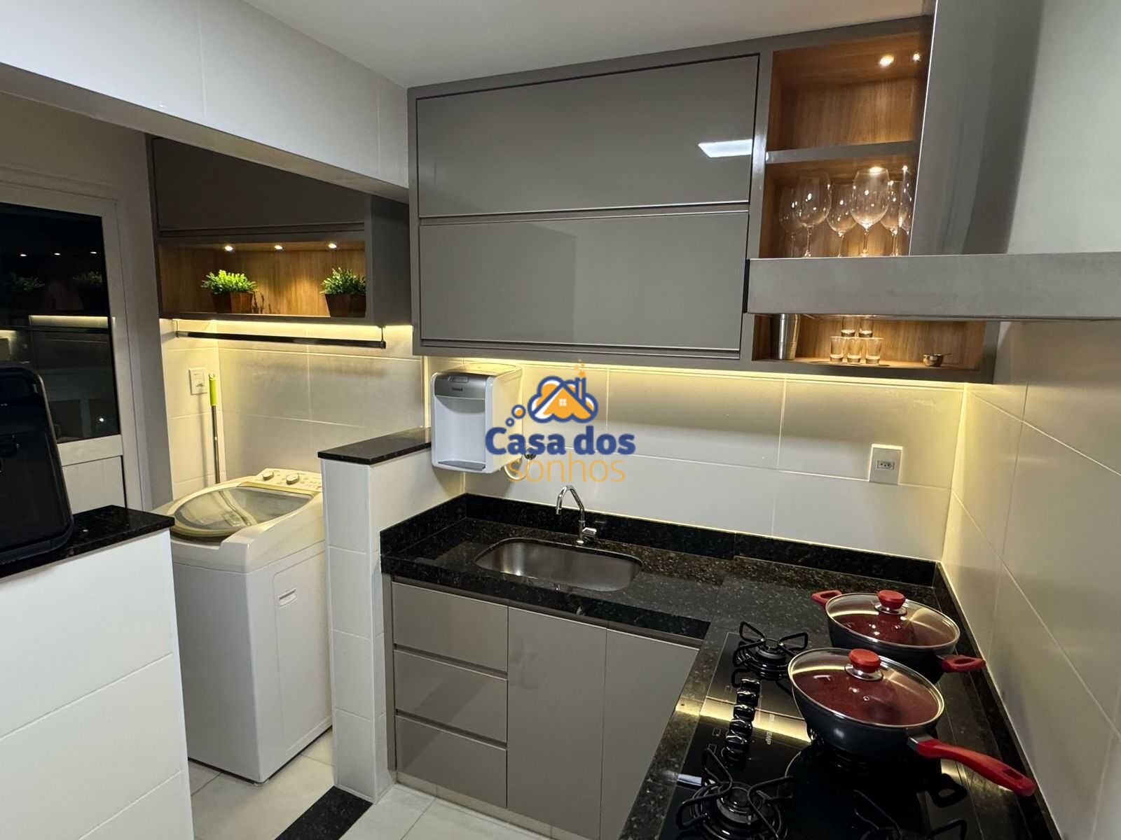 Cozinha com armários planejados e iluminação de led, coifa, forno e filtro de água