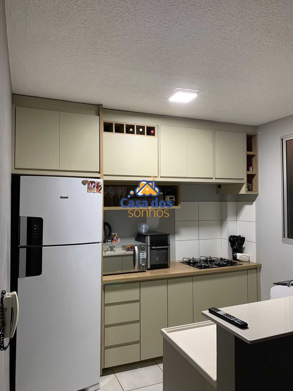 Condomínio oferece portaria 24h, água e gás encanado inclusos, e ampla área comum com salão de festas, playground, academia, salão de jogos, quadra poliesportiva, espaço gourmet, piscina adulto e infantil, e espaço kids