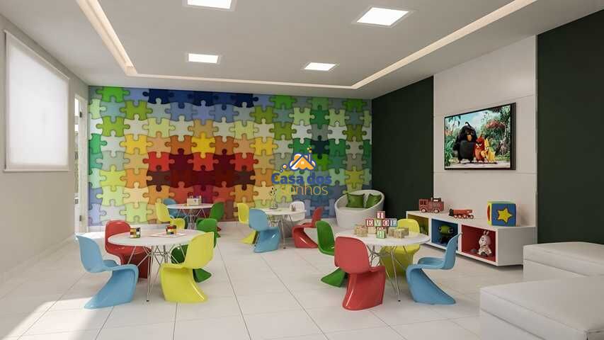 Condomínio conta com salão de festas, piscina adulto e infantil, bicicletário, área gourmet, playground