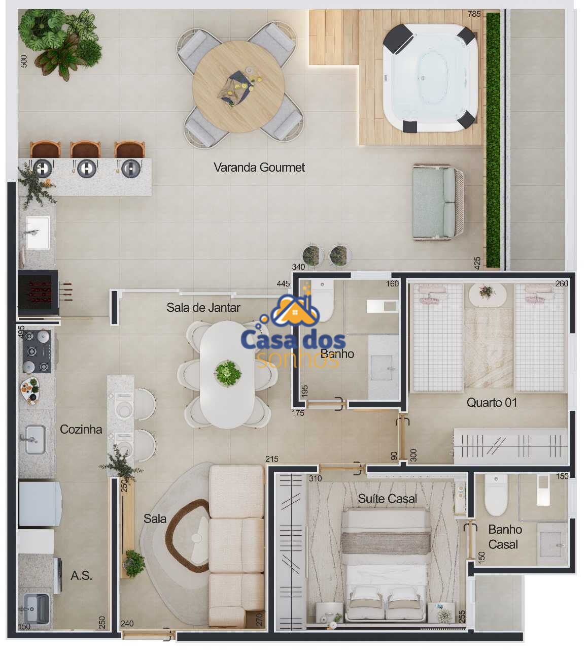 . 60m² ou 90m²: Espaço e conforto com 2 quartos, sendo 1 suíte, e uma varanda grill ampla. Personalize sua experiência com uma churrasqueira elétrica ou a carvão.
