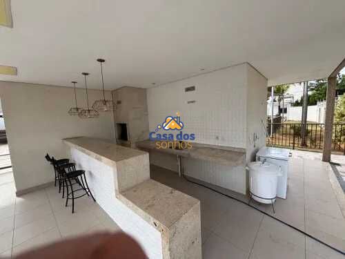 Condomínio conta com salão de festas, piscina, playground, área gourmet, portaria