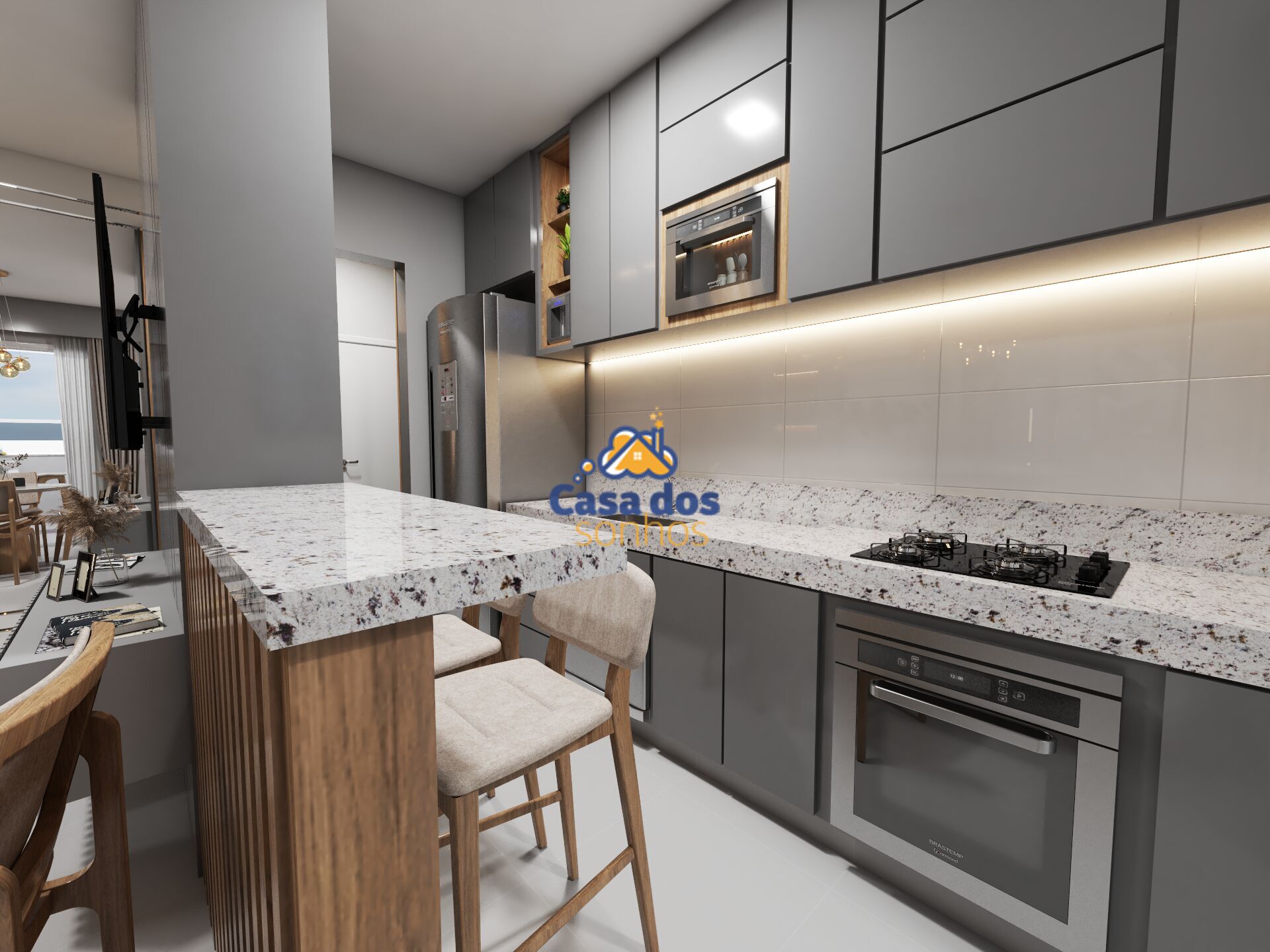 Cozinha com pia e bancada em granito