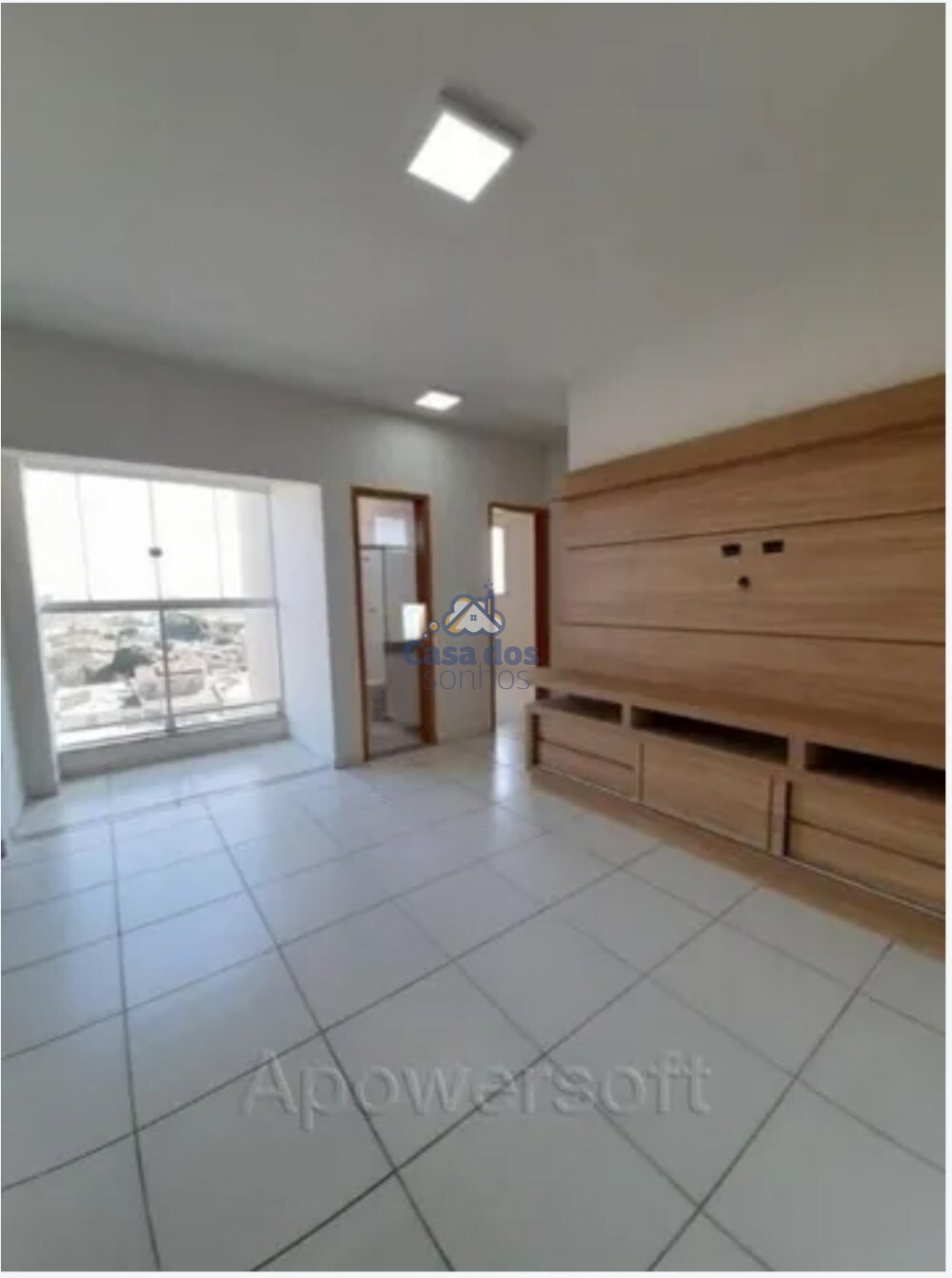 Sala de estar ampla com painel