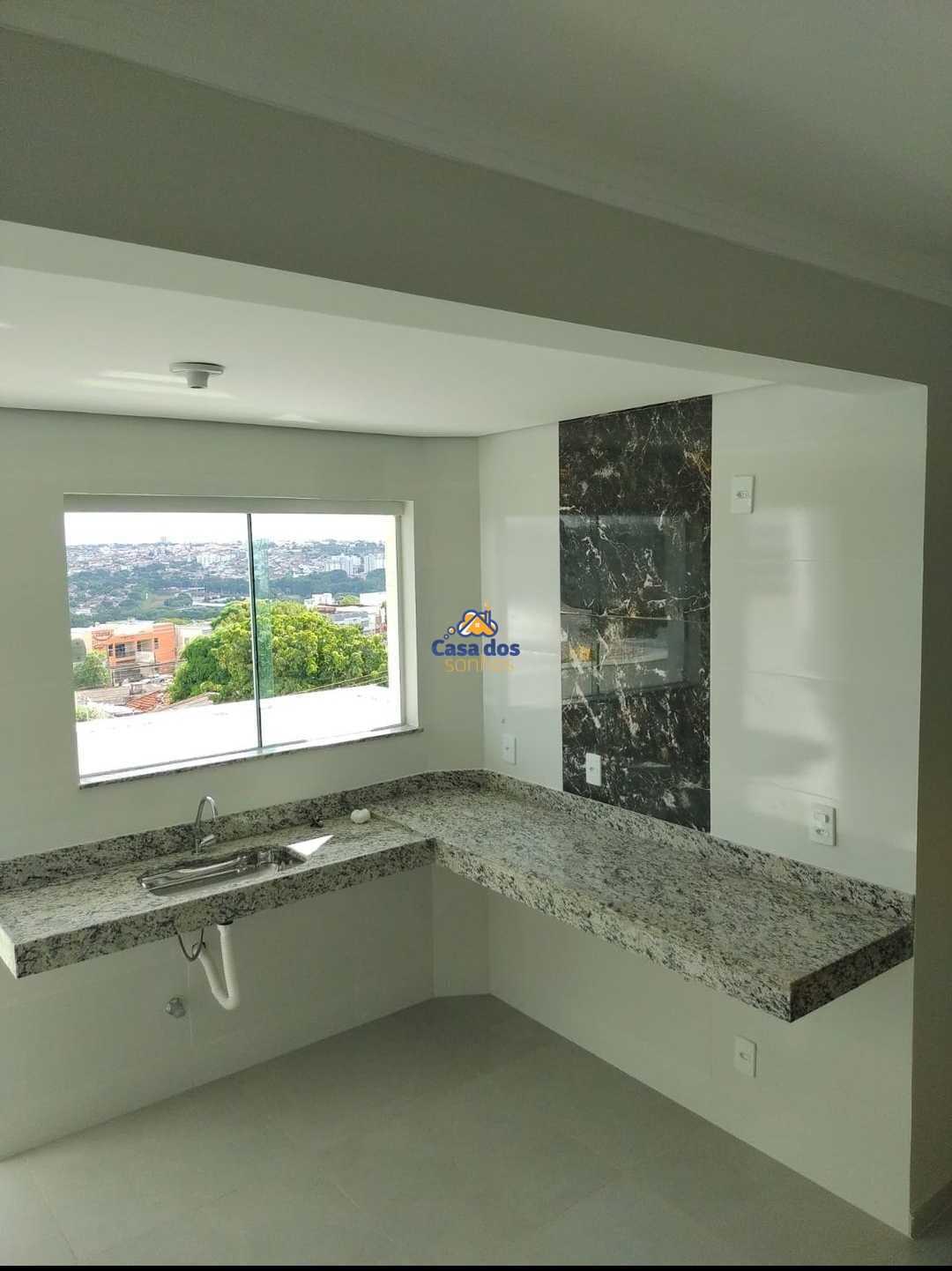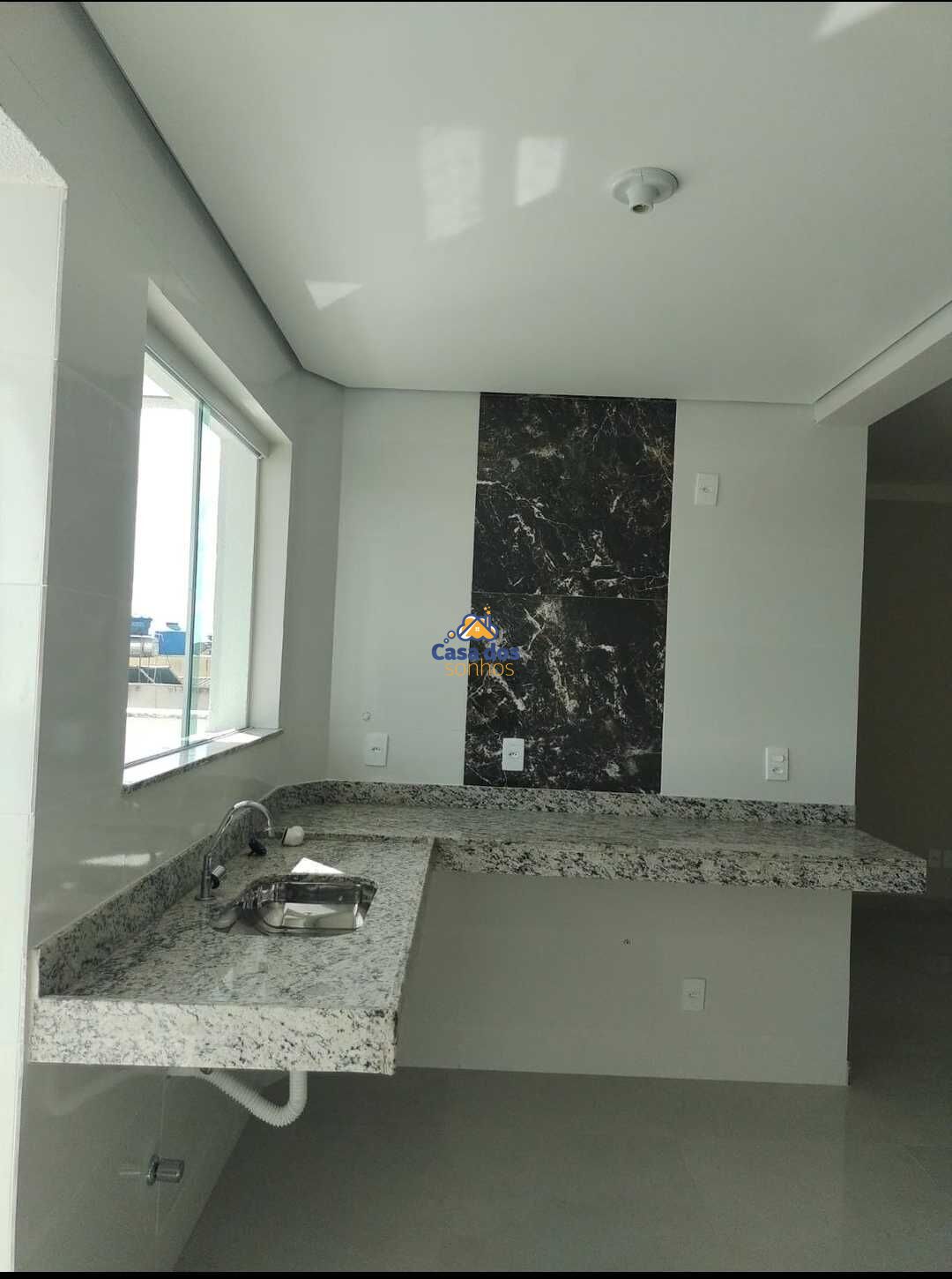 Cozinha com pia e bancada em granito e sacada