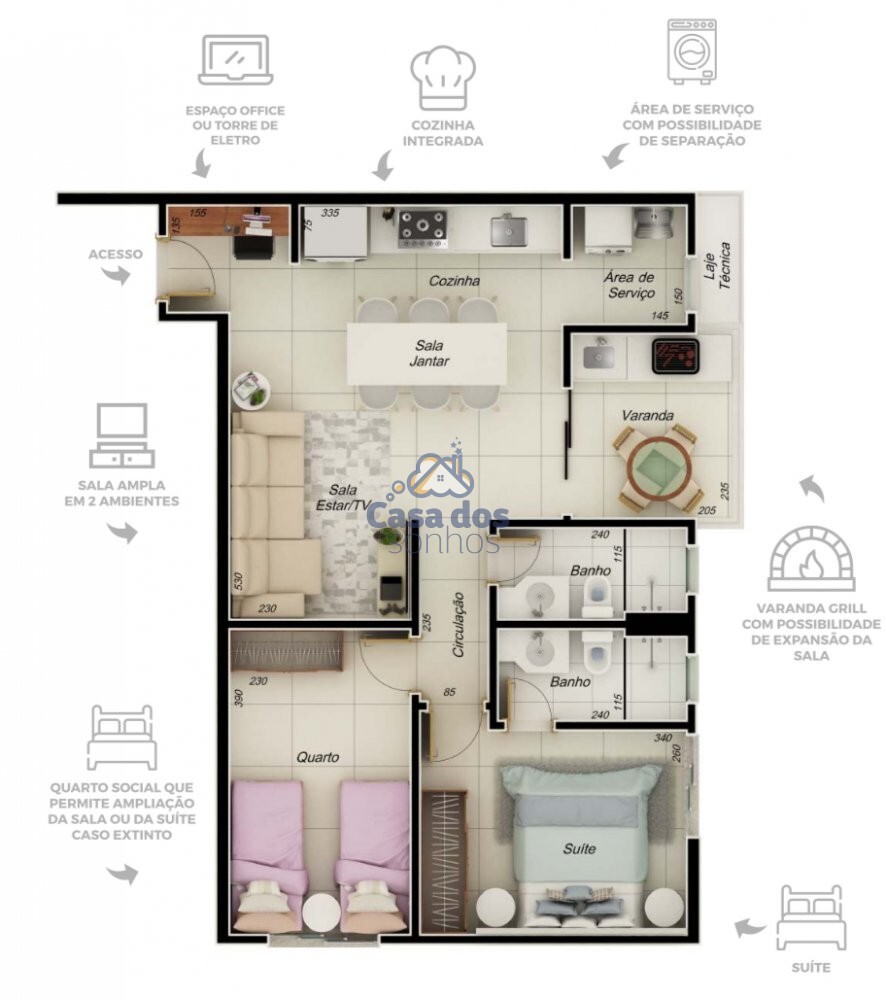 - Infraestrutura Completa: O bairro conta com uma ampla variedade de serviços e comércios próximos, incluindo supermercados, escolas, creches, postos de saúde, farmácias, bancos e áreas de lazer, garantindo conveniência e conforto para os residentes.
