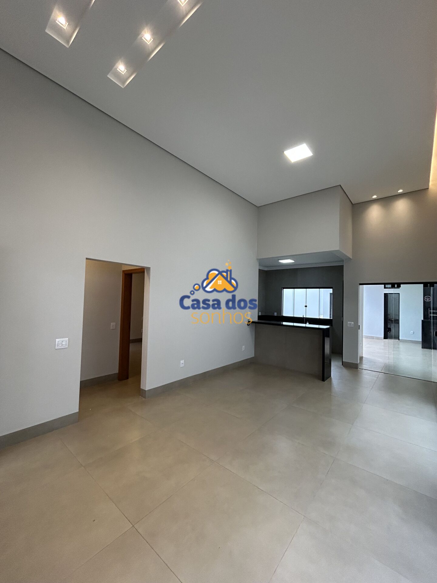Sala em dois ambientes com pé direito alto
