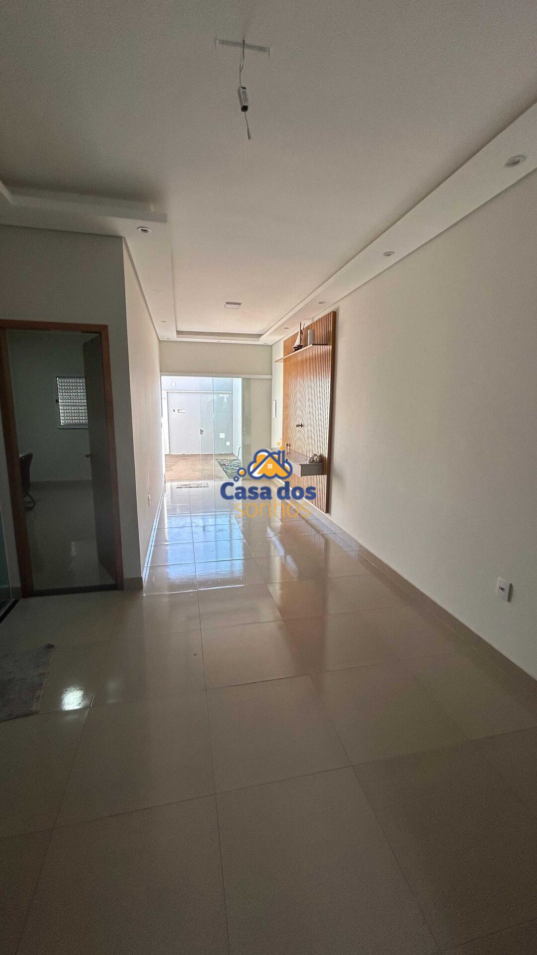 Sala ampla em dois ambientes, painel