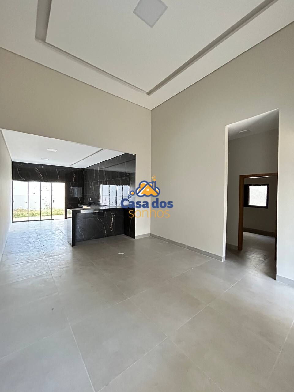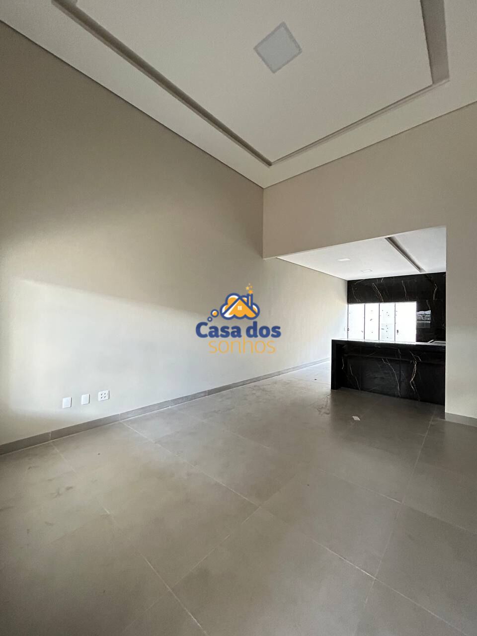 Sala ampla dois ambientes integrando com a cozinha, com pé direito de 4 metros