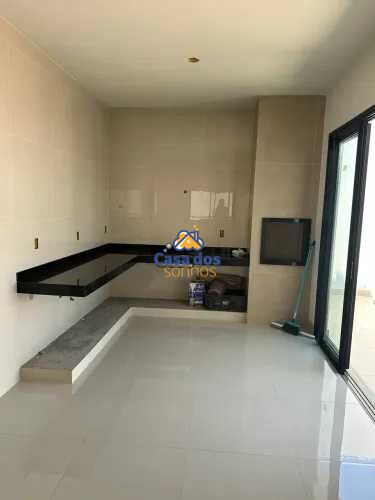 Cozinha gourmet com churrasqueira, pia e bancada em granito