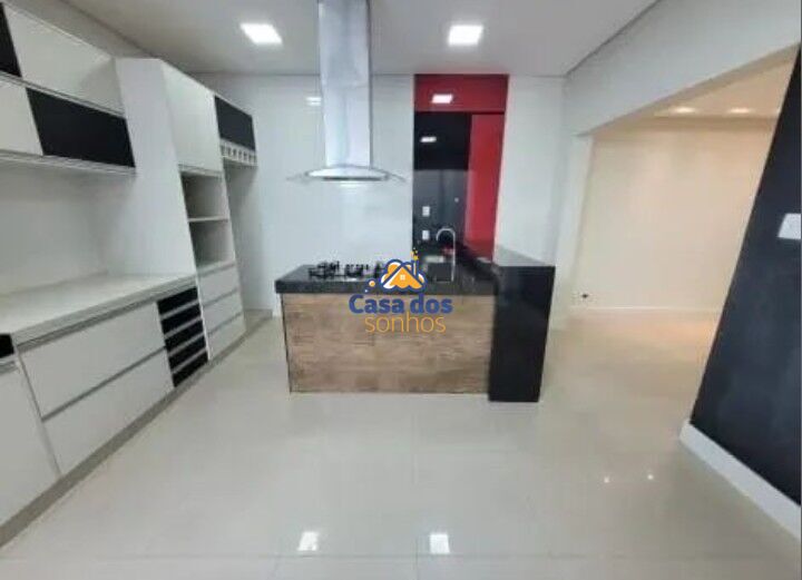 Cozinha com pia, bancada e ilha em granito, churrasqueira