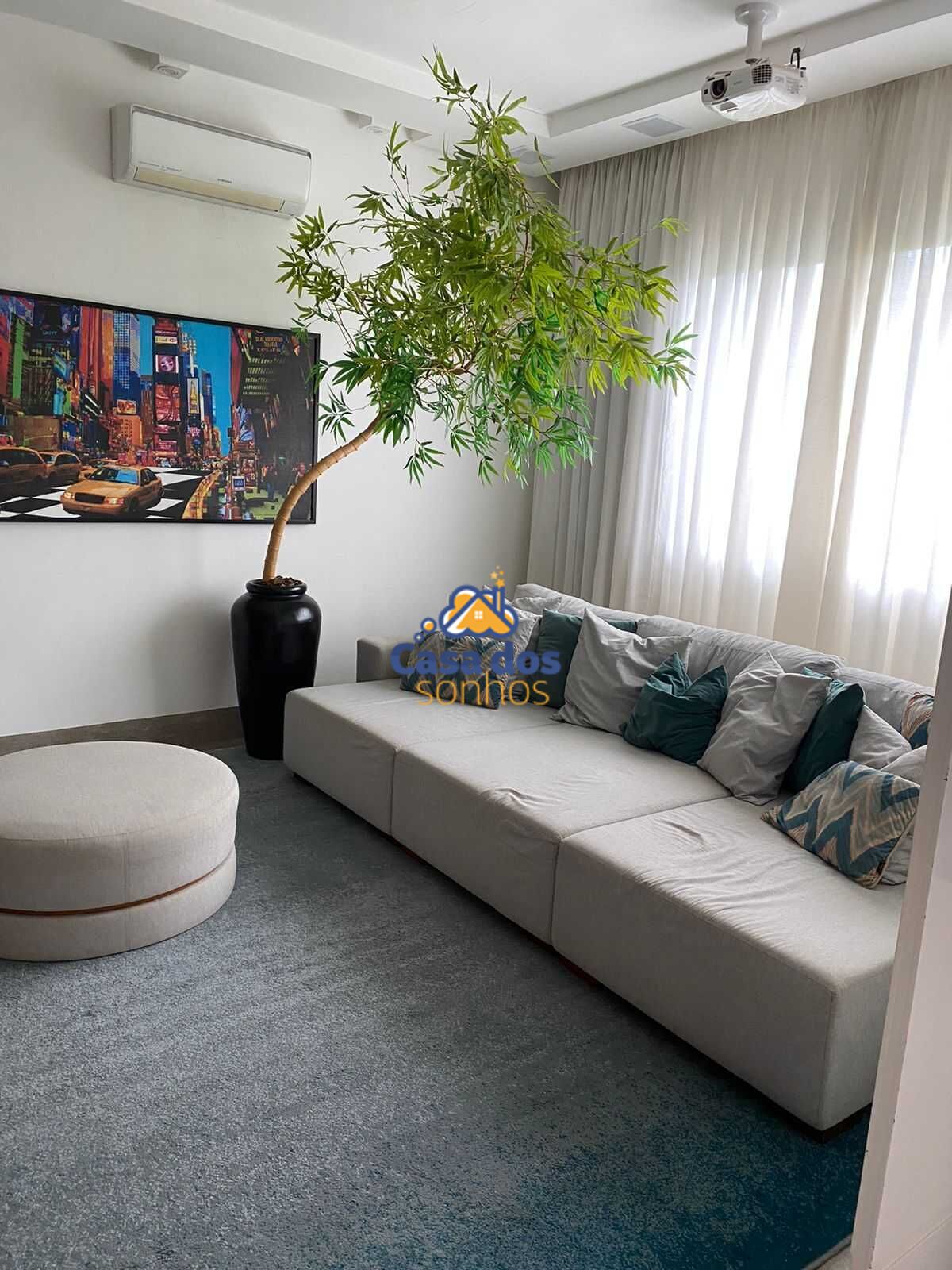 Varanda gourmet ampla com pia e bancada em granito, armários planejados, fechada em blindex