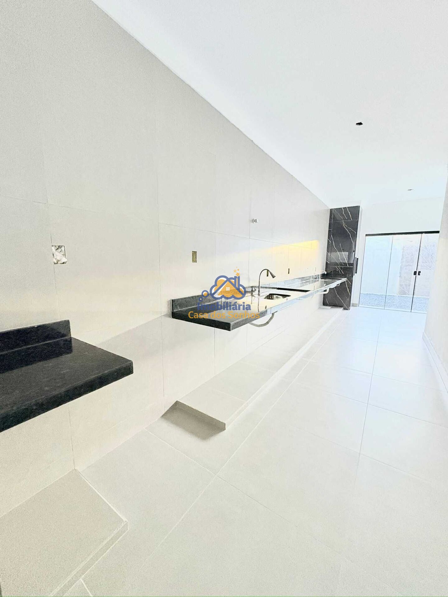 Cozinha gourmet com pia e bancada em granito, churrasqueira