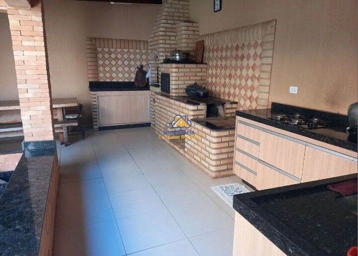 Varanda gourmet com churrasqueira, fogão e forno a lenha