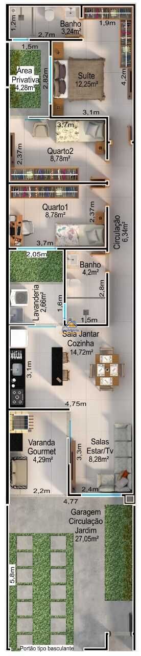 Área do terreno: 125m²