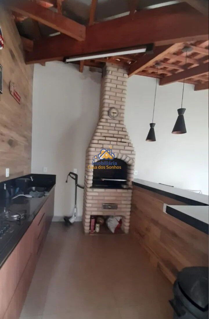 Área gourmet com churrasqueira, armários planejados e lavabo