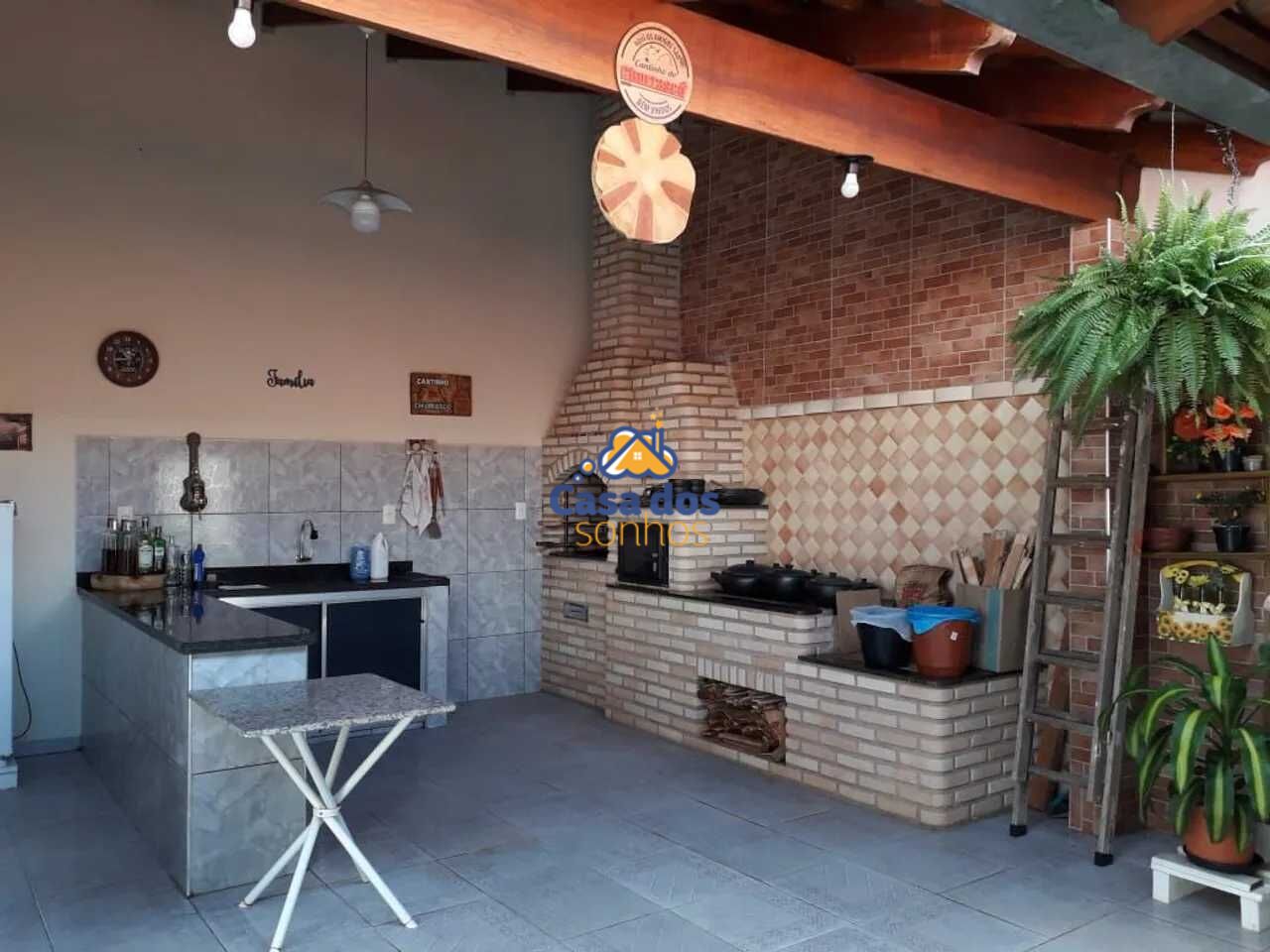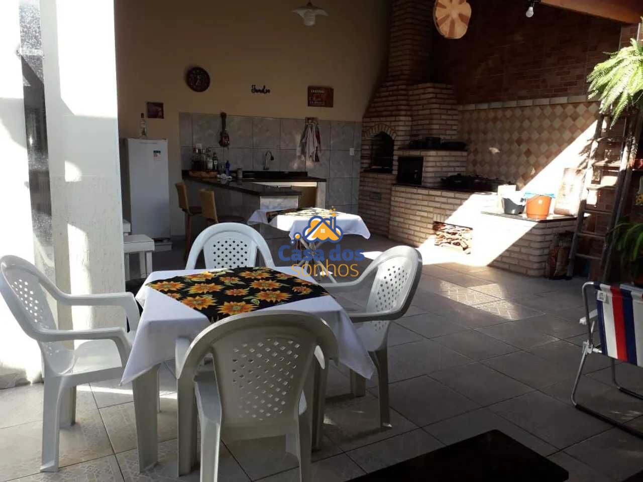 Área gourmet com fogão a lenha e churrasqueira, quarto e banheiro social