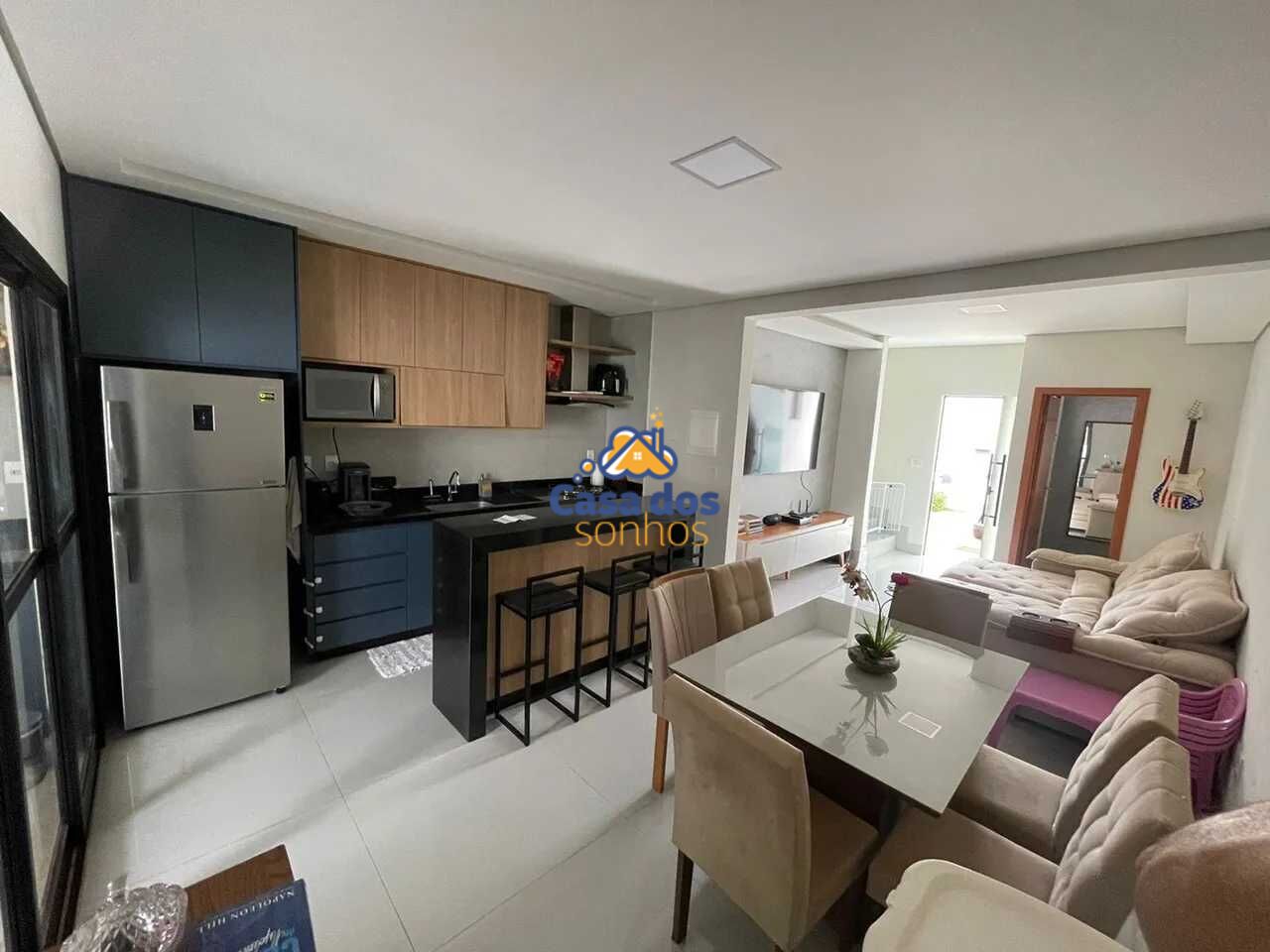 Sala ampla em dois ambientes integrando com a cozinha