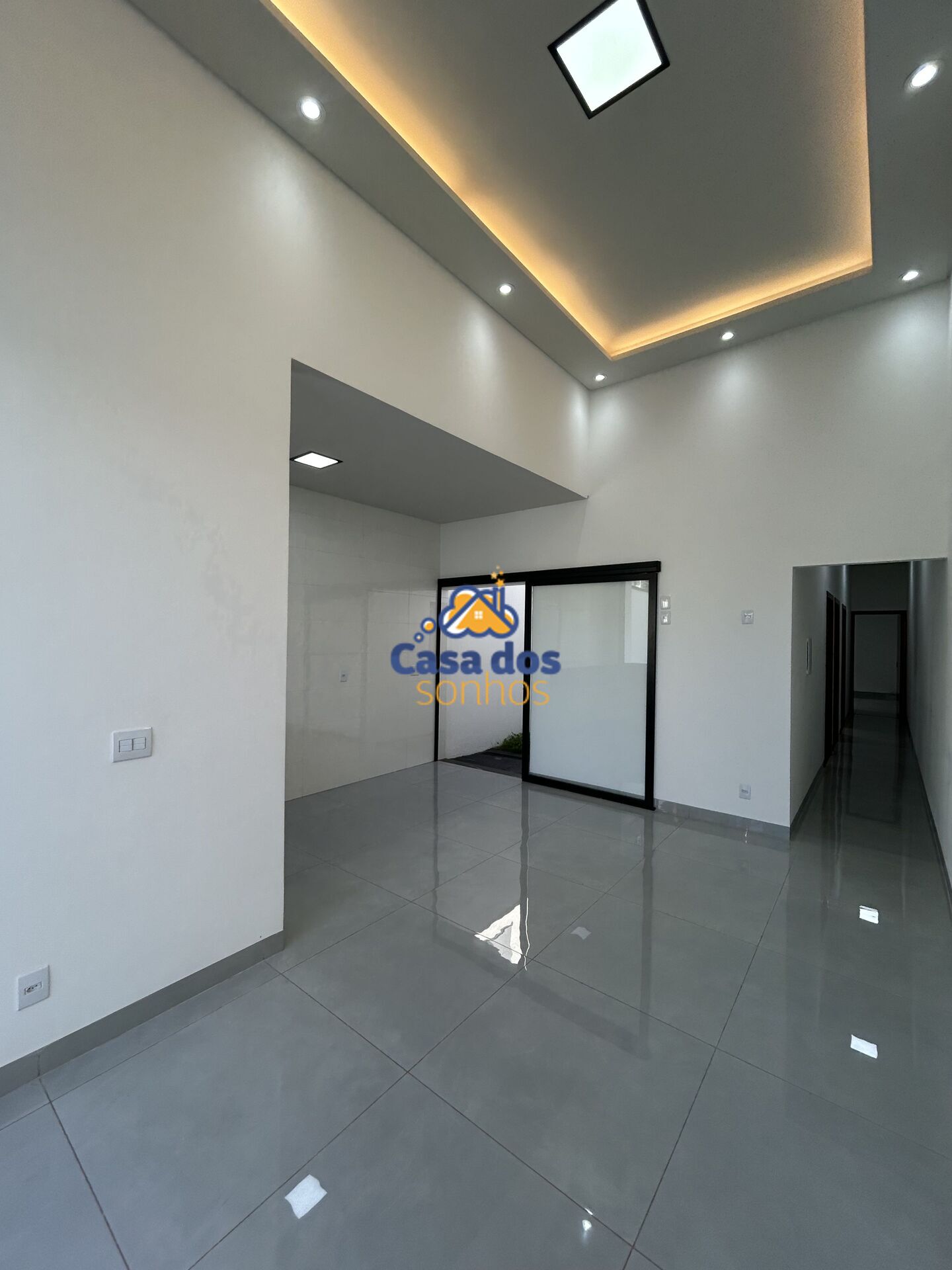 - Toda a casa com rebaixo em gesso e sanca na sala com pé direito duplo