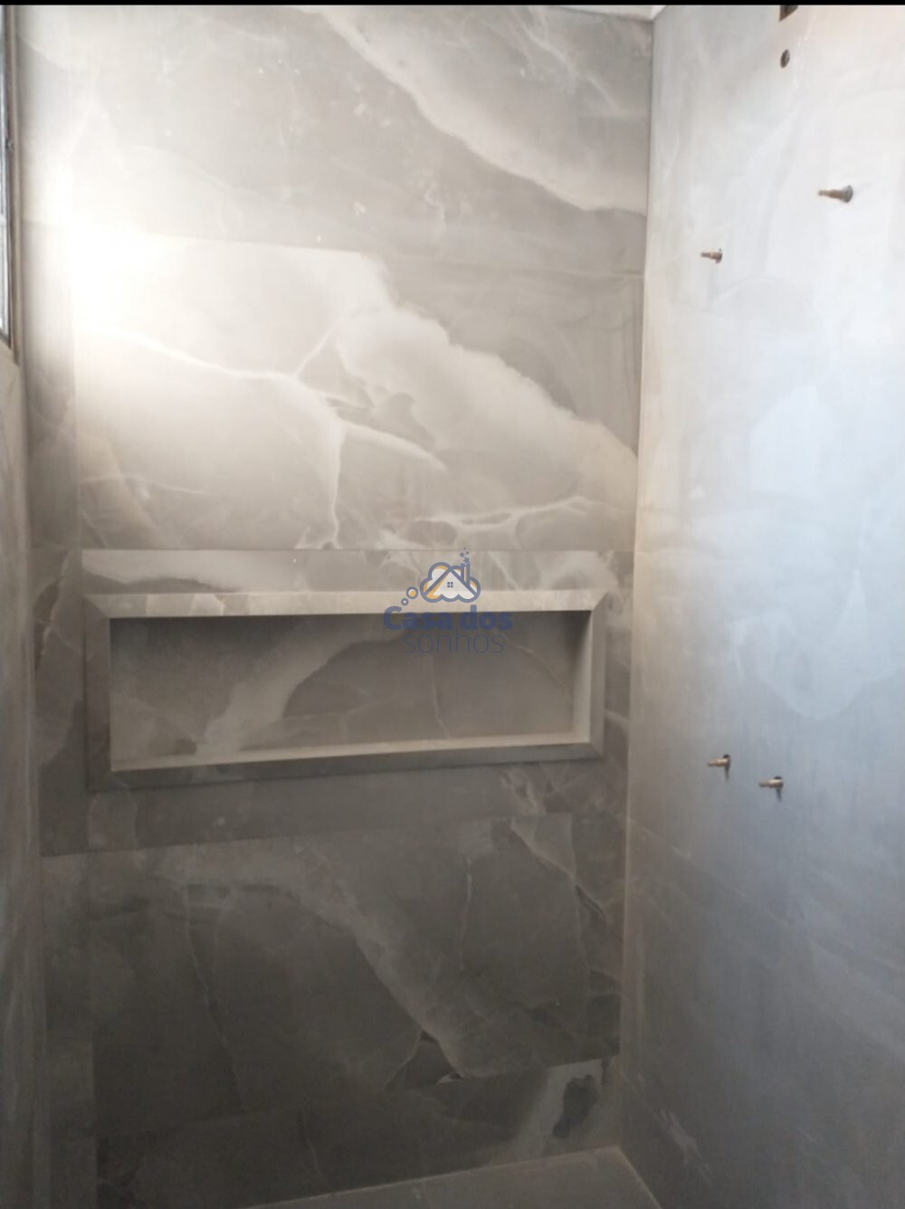 Acabamento em porcelanato,moldura e sanca em gesso,portas e janelas de esquadrias de alumínio preto