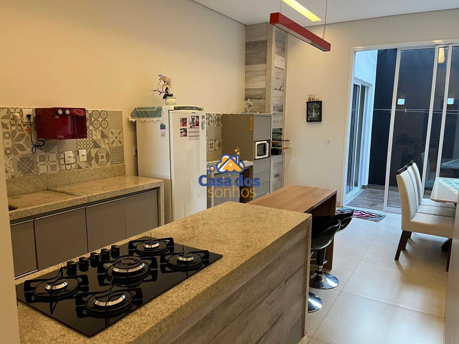 Cozinha gourmet com pia e bancada em granito, churrasqueira, armários planejados, Cooktop e forno elétrico